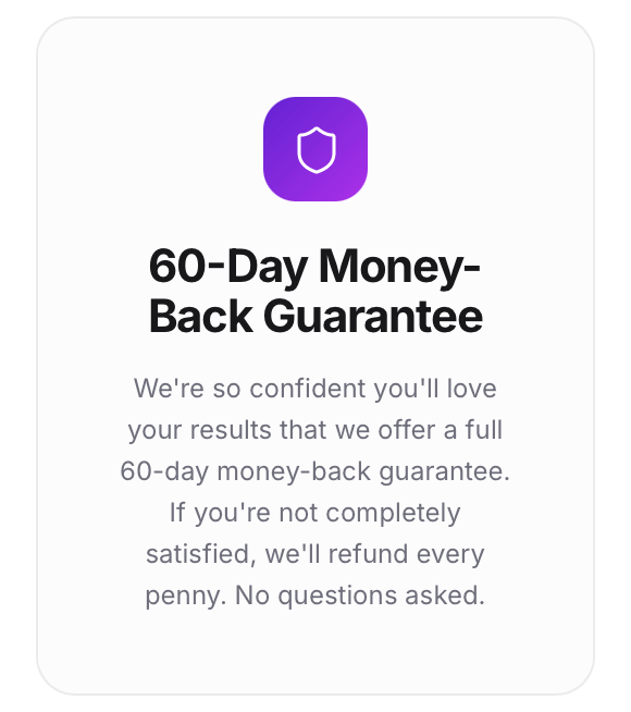 Guarantee: We offer a 60-day money back guarantee on all orders